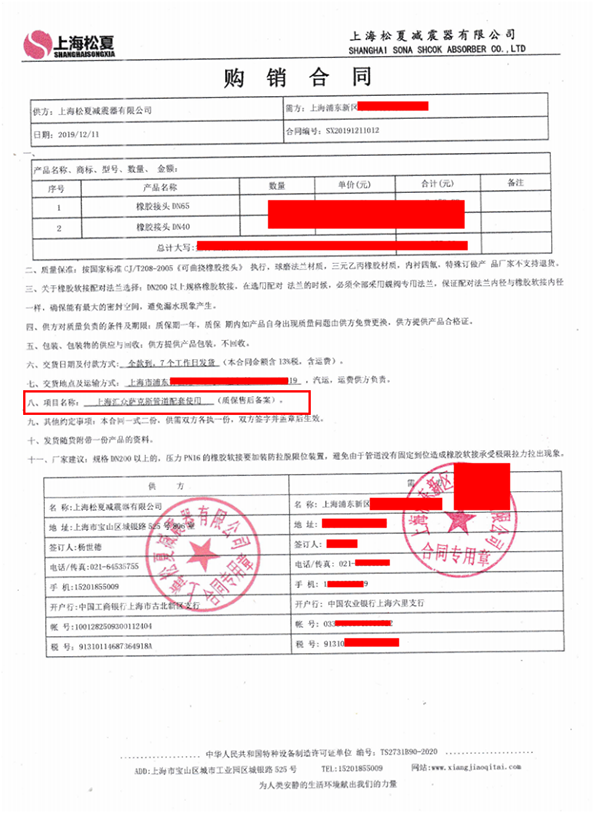 橡膠接頭產(chǎn)品,起到了減震和降噪的作用,以下是【上海匯眾薩克斯管道更換-橡膠接頭】采購合同介紹。